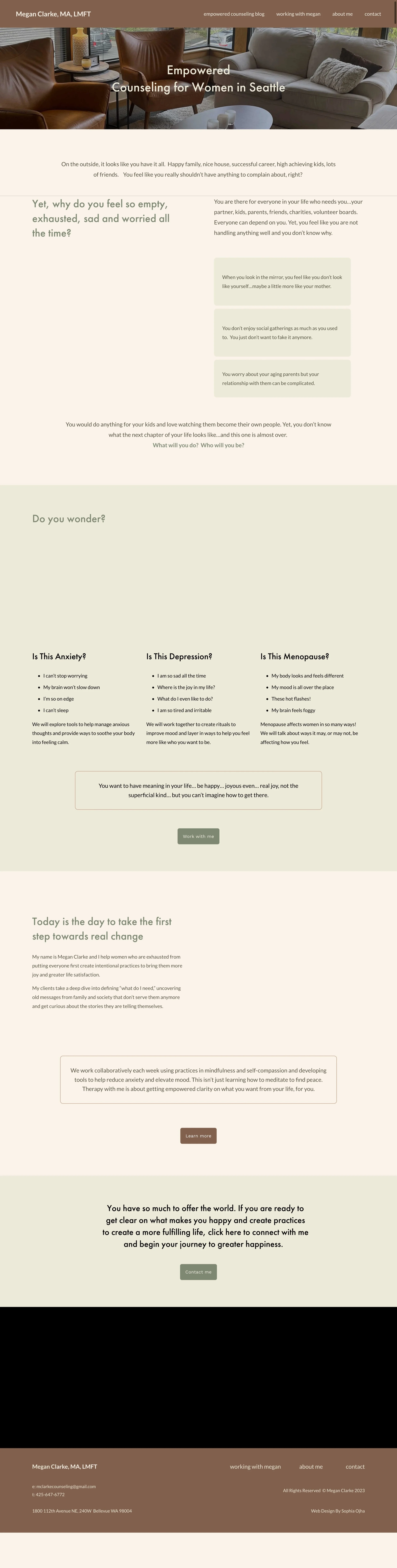 Megan Clarke Counseling needed a clean, professional, and trustworthy digital presence. We delivered an intuitive Squarespace website that clearly outlines their services and simplifies the process of booking a consultation.