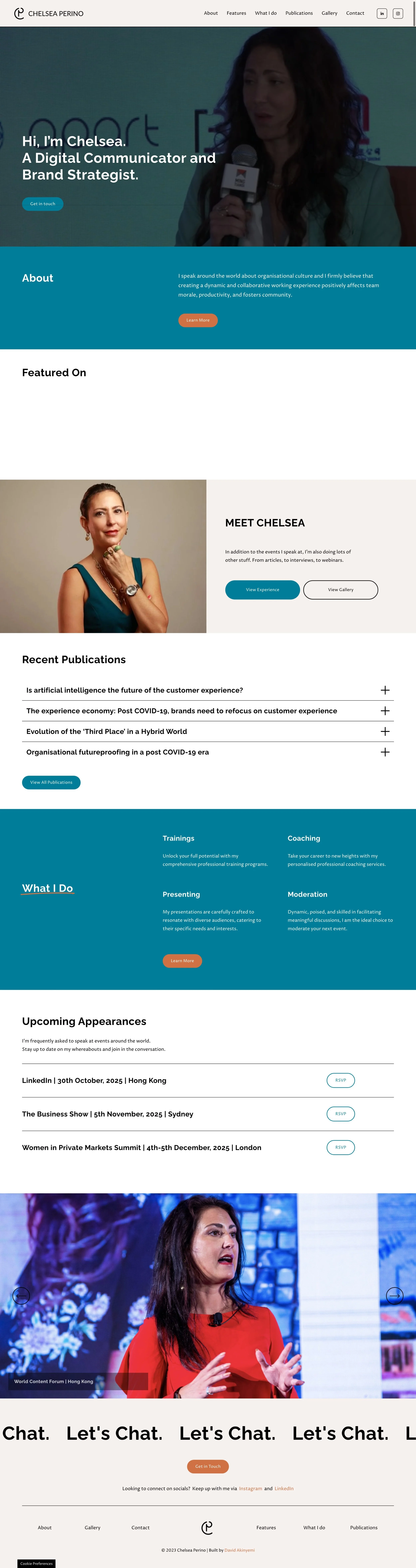 Chelsea Perino required a site to clearly communicate her value as a speaker and strategist. We designed a modern, intuitive website that elegantly showcases her portfolio and reinforces her status as a thought leader.